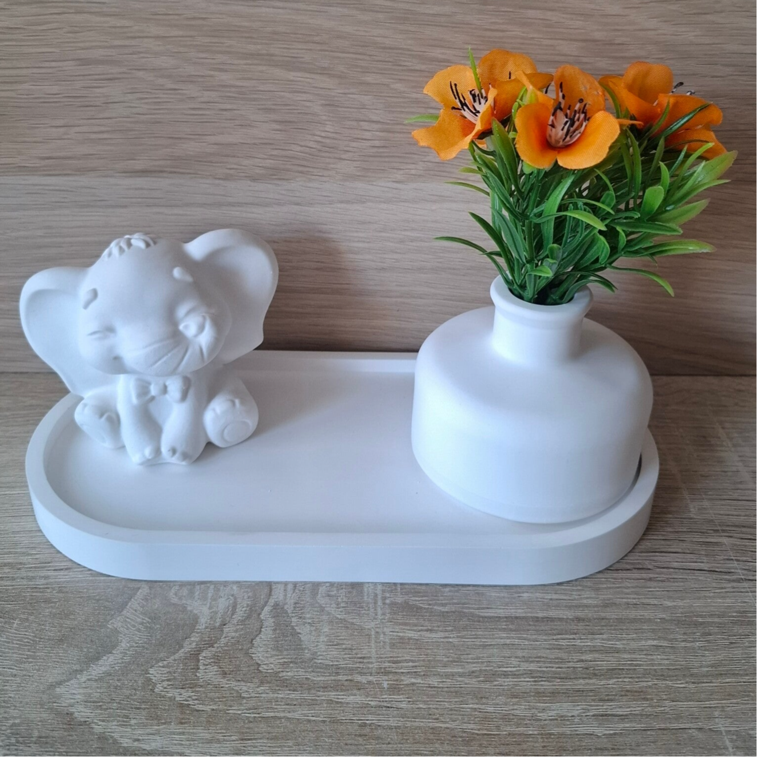 Entdecken Sie unser charmantes Dekotablett "Elefant", das durch eine sorgfältig zusammengestellte Kombination besticht. Dieses oval-mittlere Tablett ist nicht nur praktisch, sondern auch ein echter Blickfang. Wählen Sie zwischen dem süßen 3D-Elefantenmädchen oder dem kraftvollen Elefantenbuben, die beide in lebendigen Details gestaltet sind. Abgerundet wird das Set durch eine stilvolle Vase klein, die perfekt zum Tablett oval mittel passt und Ihnen zahlreiche Möglichkeiten bietet, Ihre Lieblingsblumen in Szene zu setzen. Ob für den Wohnbereich, das Kinderzimmer oder als Geschenk – dieses Dekotablett bringt Freude und Stil in jedes Zuhause. Gönnen Sie sich oder Ihren Liebsten ein Stück dekorative Lebensfreude mit dem Dekotablett "Elefant"!